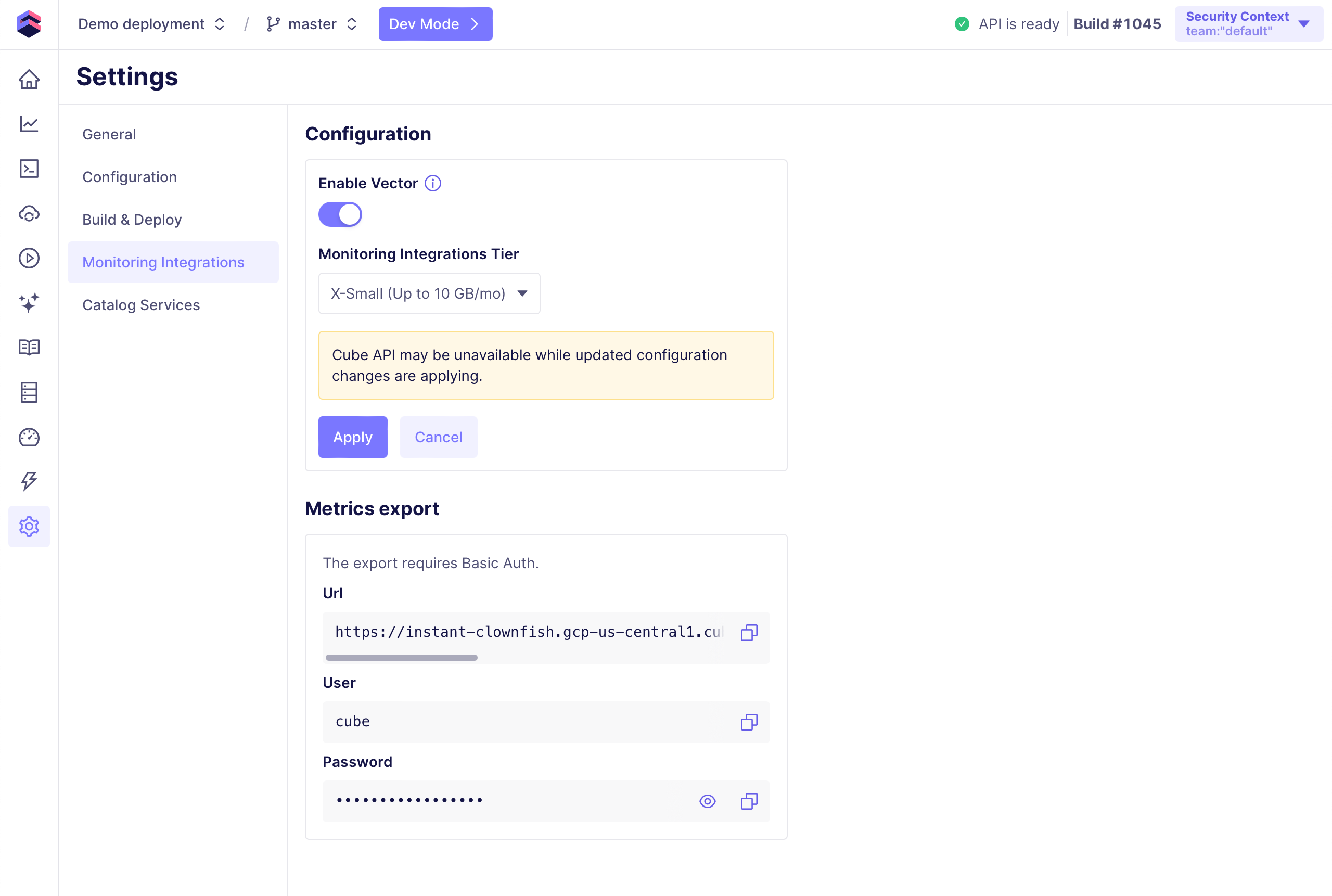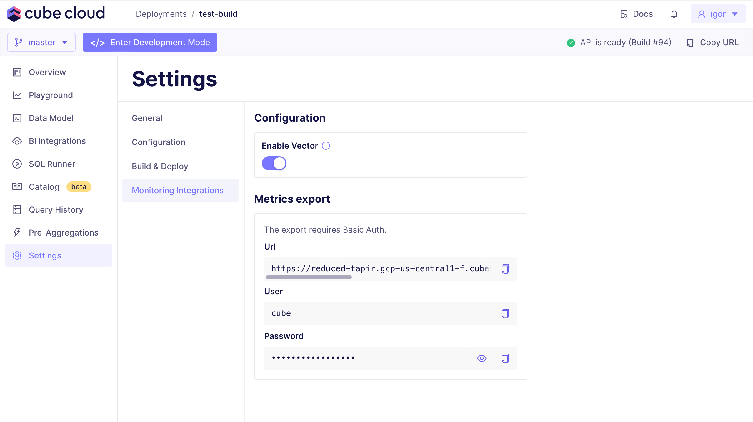setting CUBE_CLOUD_MONITORING_METRICS_USER and