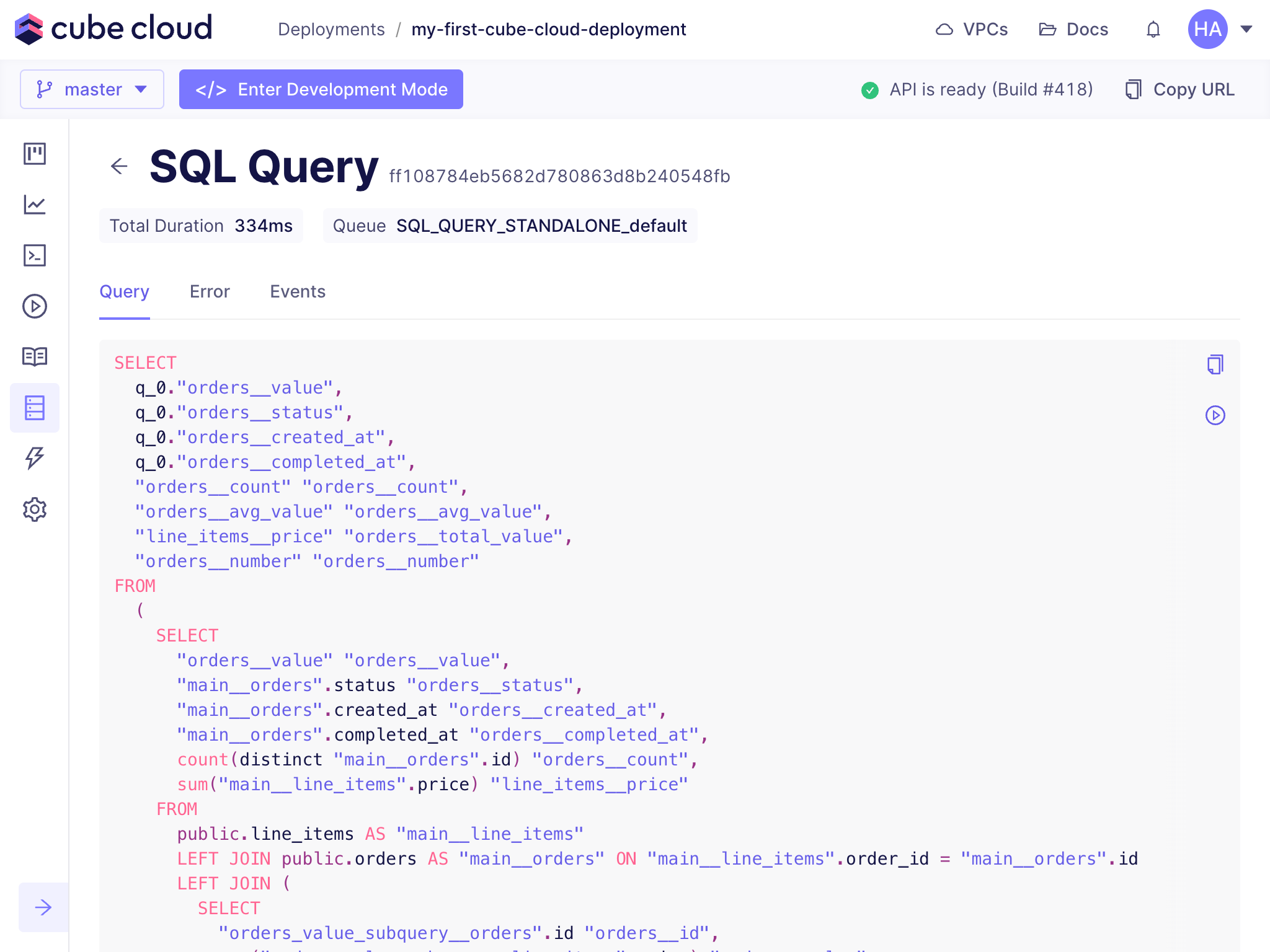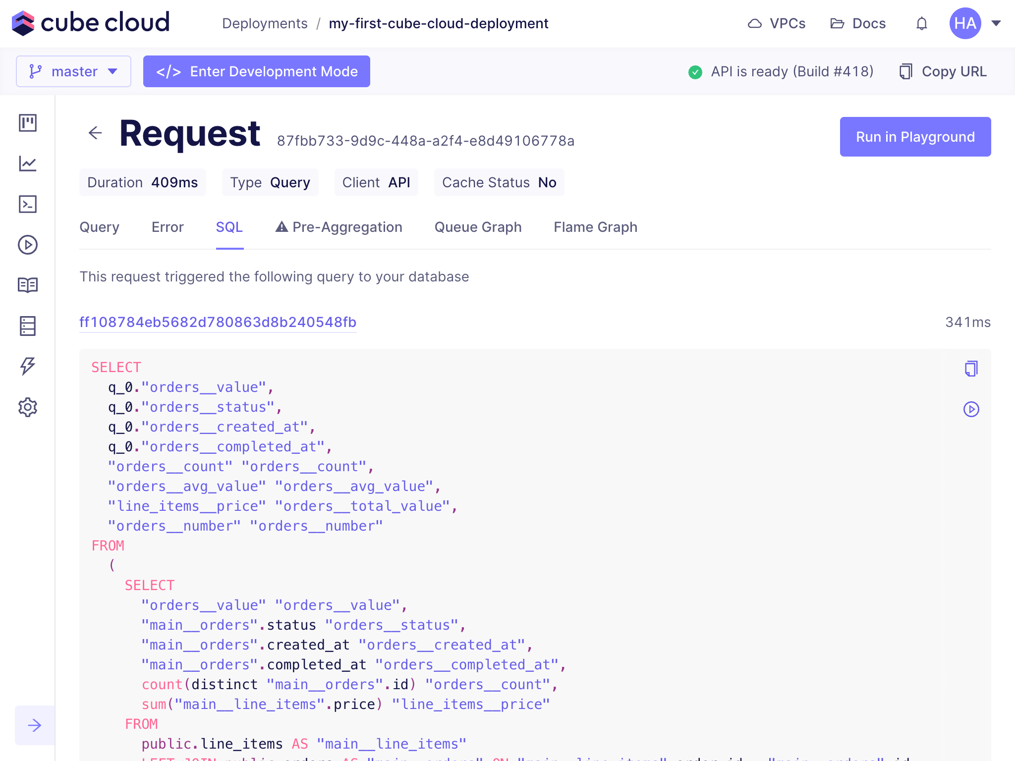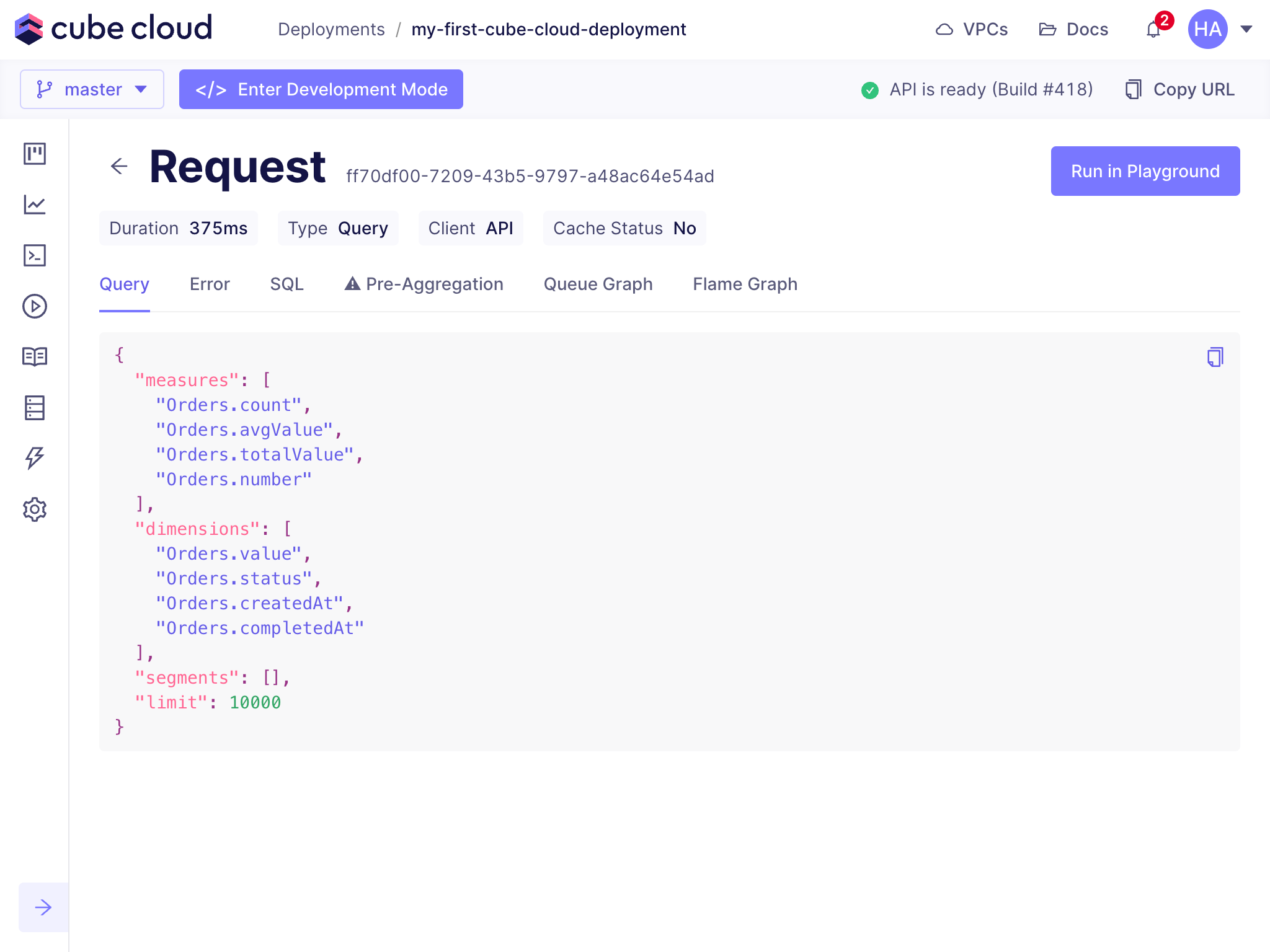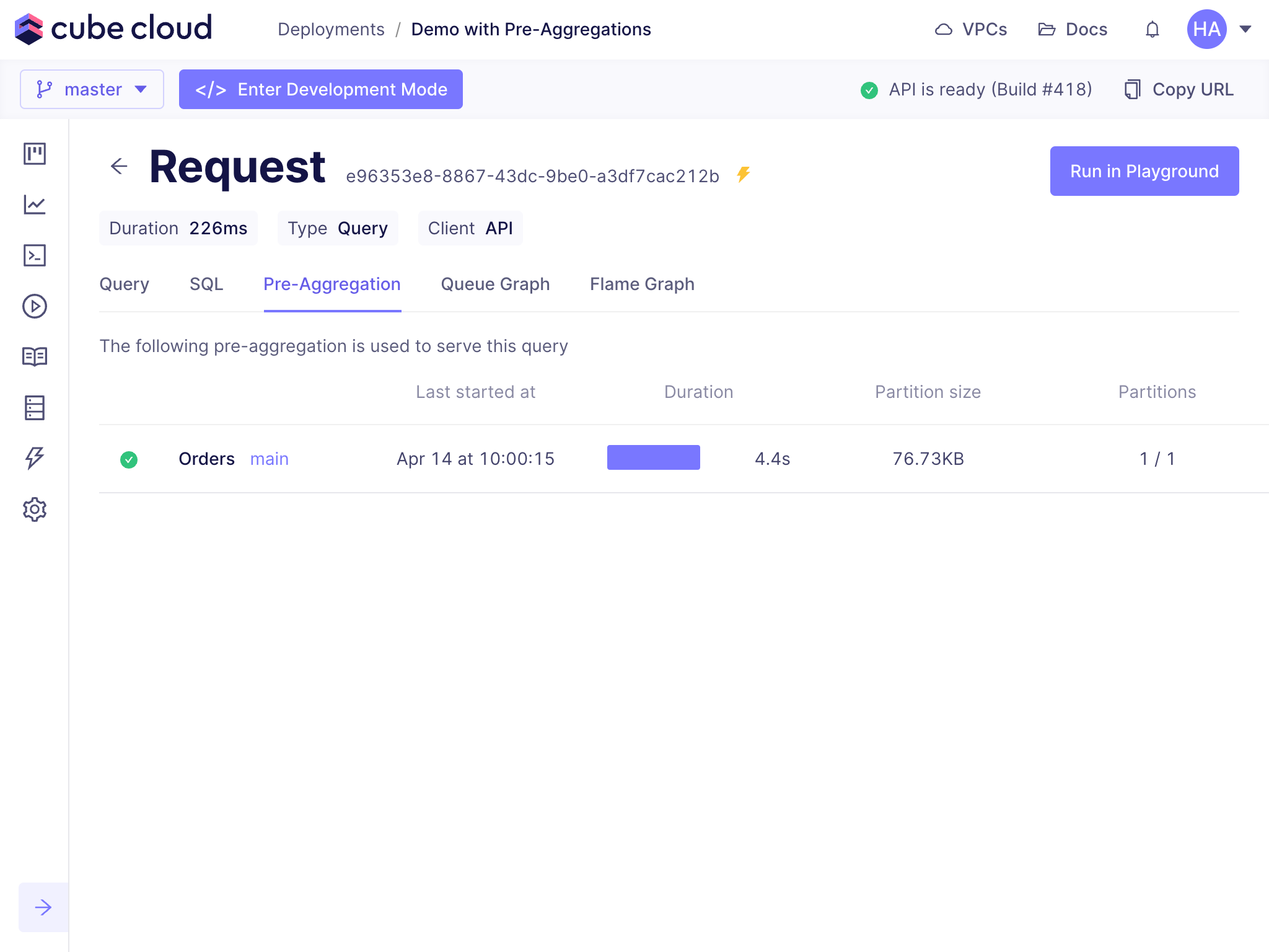 - whether the query was accelerated with pre-aggregations,