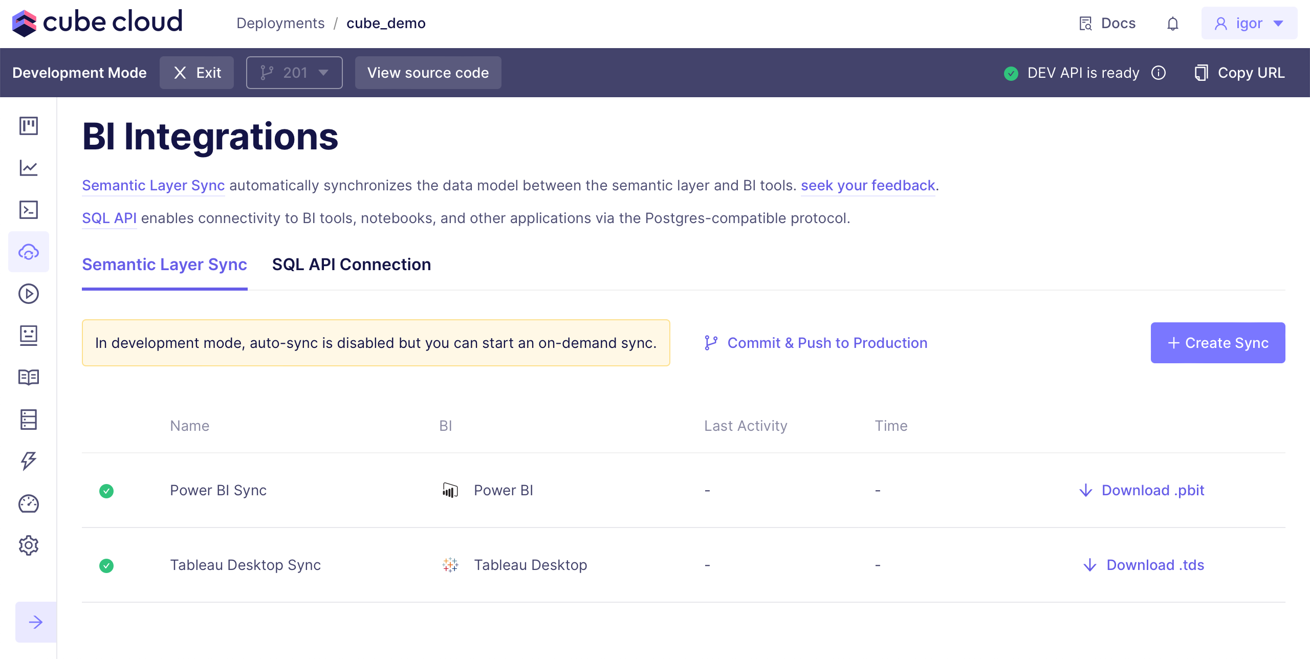 in Semantic Layer Sync.